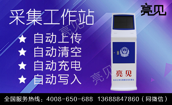 亮见执法记录仪数据采集工作站采用一体化的设计技术,超清触摸屏,全自动功能,独立带锁定位,人性化接入方式。把执法仪的充电服务和数据上传服务、执法仪的空间管理服务、时间同步服务都集成到采集站中,每当警员把执法仪插入到采集站的 USB 口时候,系统能自动检测到执法仪,并检查执法仪中的数据文件,如果发现有新的文件则自动上传这些新文件,上传完成后把上传过的文件清空,把空间腾出来为下次使用,在上传文件的同时采集站通过 USB 实现对执法仪充电和时间同步服务。