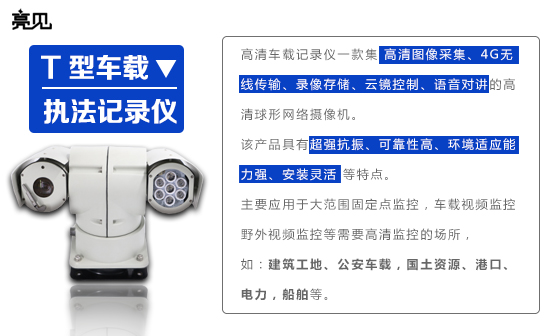 亮见车载云台执法记录仪是一款集高清图像采集、5G无线传输、录像存储、云镜控制、语音对讲等功能于一体的高清云台摄像机。该产品具有超强抗振、可靠性高、环境适应能力强、安装灵活等特点。主要应用于大范围固定点监控,车载视频监控,野外视频监控等需要高清监控的场所,如:建筑工地、公安车载,国土资源、港口、电力,船舶等。