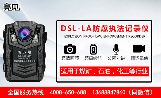 {防爆执法记录仪  亮见DSJ-LA}防爆执法记录仪顾名思义必须是具备防爆功能的,通用的防爆执法记录仪一般需要具备以下功能:拍照、摄像、存储、夜视、GPS、图片传输等功能,防爆执法记录仪还具备语音对讲功能。