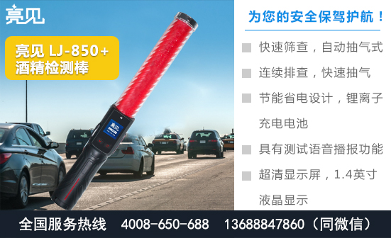 据了解,该交管支队为此次行动配置的新型交警智能酒精测试仪为亮见LJ-850+交警智能酒精测试仪。采用电化学燃料电池型传感器,符合人体工程学棒式设计,方便携带。3000mAh大容量锂离子充电电池,可连续工作八小时以上,耐用稳定,安全环保。进气孔处有防水防尘材料,增加了仪器的使用性和使用寿命。支持快速筛查,可自动抽气。且这款智能酒精测试仪一机四用,集发光指挥棒、测试仪、警哨、强光手电筒四种功能于一体。