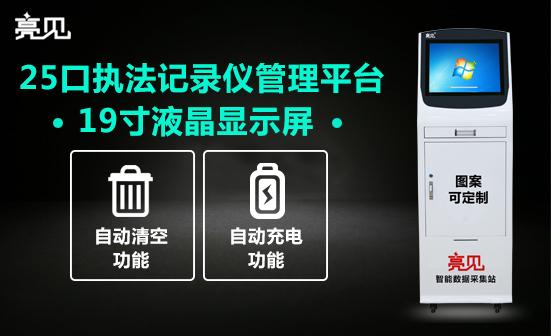 亮见数据采集工作站采用一体式人性化设计。采用超清触摸屏,能够明确的显示出每台执法设备对应的 现场执法记录仪编号,使用者编号,姓名,同步时间上传状态和信息等。亮见数据采集工作站可以自动采集数据,可支持25台现场执法记录仪同时上传数据。数据上传成功后采集工作台会对执法仪内上传数据进行清空,方便用户下次使用。