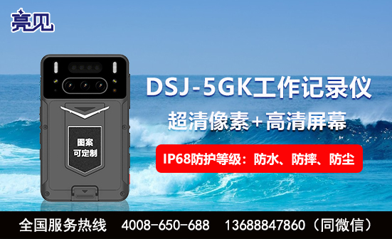 这款亮见DSJ-5GK智能工作记录仪为业内超薄执法仪,采用3.1寸超高清显示触摸屏,具有优良的防护性能,防护等级高达IP68。配置两块手机用莱卡小镜头,4200万超高清像素,自动光学对焦、白昼自动切换。具备良好的续航能力,采用14纳米主控芯片,超低功耗,采用可更换电池供电,更换电池不断电,延长使用时间。