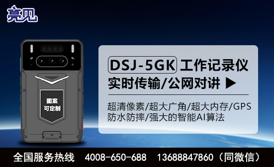 亮见DSJ-5GK智能工作记录仪自带AI算法,支持人脸、车牌识别。内置WIFI模块,可通过WIFI无线通信方式以文件或流的形式传输数据。连接无线网络后,通过对应软件实现2台或多台执法记录仪间的语音对讲。可接入移动、联通和电信SIM卡,实现全网通无线传输功能。具有视频通话功能,实时传输数据并可实时通话。且支持双码流,摄录时一路码流保存到本机,另一路码流通过无线上传到后台。